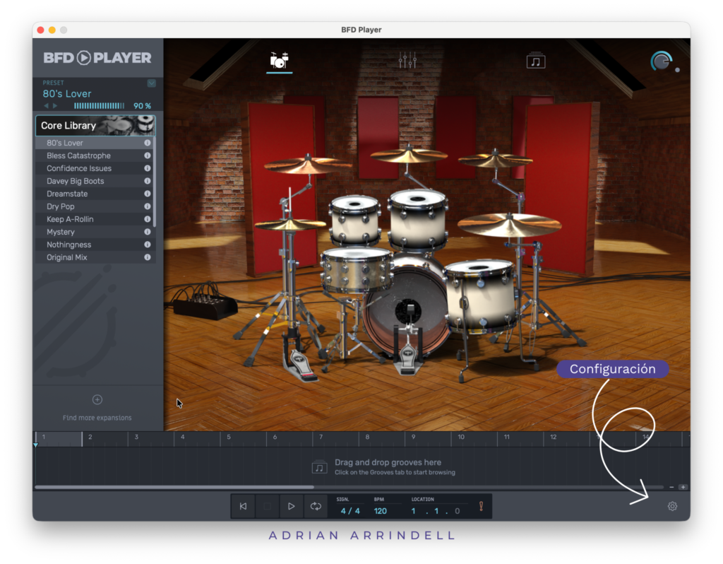 - Conexión MIDI con BFD